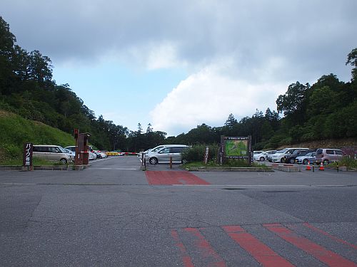 | 桧枝岐村のそばの老舗「七代目まる家」 | 御池の駐車場。まだ余裕があった。1台千円也。 |