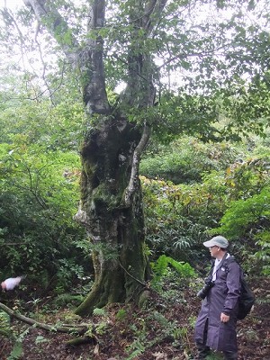 | ○実施日:2016年9月9日(金)~11日(日) ○参加者:7名 ○行程(車利用・コテージ泊): 9日:5:30我孫子5:50―(谷和原IC・常磐・東北道・盛岡IC)-11:50盛岡―(秋田駒ケ岳中腹、田沢湖)-17:00秋田美郷あったか山コテージ 10日:起床6:00-あったか山7:30-熊谷邸8:30―黒森山登山口8:55~マンモス杉11:00~13:00千古杉・万古ブナ(昼食,神事)13:50~16:30黒森山登山口―熊谷邸17:00-17:30あったか山 (18:30から熊谷邸で宴会) 11日:起床5:00-あったか山6:30-(横手IC・秋田道・湯田IC)-ほっとゆだ駅8:00-三滝神社駐車場9:00~(三滝神社、白糸の滝、姥滝、爺滝、岩清水、降る滝)~12:00駐車場13:00―正岡子規碑―瀬川宅14:00―(北上西IC・秋田・東北・常磐・谷和原IC)-我孫子20:00 ○グレード:黒森山B、滝巡りA ○費用: 総計143,000円 (20,400円/人) 交通費:84,000円、宿泊費:16,000円、食費:16,000円、ガイド料・土産等:27,000円 [プロローグ] リーダーの私は、7月末にラクナ梗塞で入院、8月中旬に退院。お医者さんの診断では、山登りOK,但し薬と水分補給は忘れないように、というものだった。私としては、この日のために突貫工事で道を開拓してくれた金沢諏訪堂の会の面々に会うこと、西和賀のガイドさんからは、ブナの森が体を癒すと言われ、何とか実現するぞ、となっていた。 レンタカーを予約し、役割分担し、AEROBIKE漕ぎで体力増強に努めた。雨天決行としてはいたが、台風が来ており、こりゃアカンということで、参加者の声を聞き、結局最初の焼石岳をパスして1日短縮した。まあ、いろいろとあったが、何としてでも行け、と言うお告げだったのかもしれない。 [9月9日] 朝5時50分出発。その日に秋田のあったか山に着けばいいということで、栗駒、秋田駒、田沢湖、角館、乳頭温泉など、どこに寄ろうかという議論の末、まずは盛岡で冷麺を食した。その後、秋田駒8合目への道を登って行ったのだが、ガスに包まれ、ガソリンが残り少なくなってきたということで、途中で諦め、田沢湖で金色の辰子姫に出会い、あったか山への道々で、絶品の角館・後藤福進堂の金柑まんじゅうを買いにいこうとしたのだが、祭りで車が入れず、諦めてあったか山に向かった。 温泉に浸かり、ゆったり、美味しいラタトゥーユなどの食事で、会話が弾んだ。 [9月10日] 朝6時起床。その時のTV情報によると、曇り、昼ごろ晴れというものだった。金沢諏訪堂の会の会長宅に集合し、まずは朝礼。金沢諏訪堂の会の方々、地元の六郷山岳会の方、朝日新聞社の記者等、我々を入れて総勢18名が紹介された。 古来、中国では重陽の節句(旧暦9月9日)に手近な山に登り、酒宴をひらく「登高」という年中行事があり、高いところに登り、菊の花を入れた酒を飲むことにより厄払いをするという風習があるという。それに因んで、新暦で1日遅れではあるが、それに則って、黒森神社で神事を行うという説明もあった。杜甫の漢詩「登高」を下敷きに、その会長が「黒森山登高」を作っており、昨年6月同様、初めて見るものにかかわらず、それを吟じるようにとの仰せだった。 8時半、トラックの荷台に乗り出発。熊の巣、芭蕉大湿原、長沼坊口まで南下、そして東へ、屶磋峻道、ブナ回廊、峰の老松、マンモス杉、を見て、次は北上し、千古杉、万古ブナへの道を、天気予報に反し、雨に打たれながら歩いた。最初は植林された杉林から、ブナ林へ、なかなか見事なものだった。 今回の新道では、幾つもの素晴らしい木々が発見されていた。峰の老松と名付けられた大きな五葉松が一本、枝を切った様相がマンモスに似ている巨大なマンモス杉、何故こんなところにと思わす、印象に残る木々だった。千古杉、万古ブナは見事なもので、特に万古ブナは、樹齢何年になるのか、大人二人でやっと手が届くかどうかという大きさに圧倒され、抱きつき、ゆっくりと、木のぬくもりを楽しんだ。 黒森神社までは、時間的に難しくなり、千古杉の前で神事が行われた。祝詞があげられ、玉串を奉納し、参拝し、石川県白山の菊姫のひやおろしで菊酒のお神酒をいただき、厳かな雰囲気に包まれていた。雨もあがり、豪勢なフルーツ付の弁当を食し、焚火とあったかいコーヒーで暖をとった。 夜は、これまた菊姫の菊酒で乾杯。この場で、新しく作られた「黒森山登高」を吟じて、招待された宴会が始まった。 |