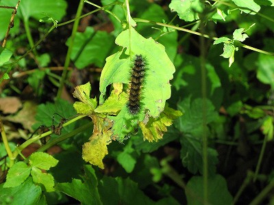 | いざ出発 真昼岳登山口と同じところから入る | イモムシは昆虫で足は6本 指に乗せると可愛い |