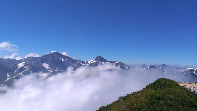 | 7月31日 | 白馬山荘4:10➡(20分)白馬岳➡(30分)三国境➡(110分)雪倉岳避難小屋➡(60分)雪倉岳➡(160分)水平道分岐➡(120分)朝日小屋 15:00着 | |