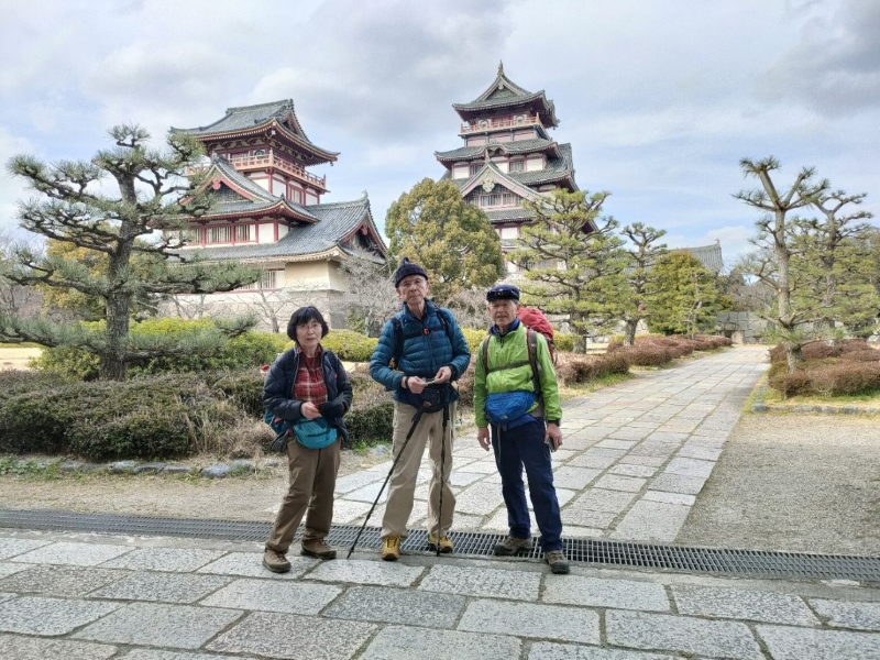 | ◎感想 3月9日(月) 「東山1コース」 東京から各々ひかり501号に乗り京都駅ホームで全員集合した。奈良線に乗り換え稲荷大社に着く。朱塗りの美しい稲荷大社では雅楽が演奏されていた。今では一万本が立つという朱塗りの千本鳥居は外国人観光客であふれていた。奥社の上にトレイル標識35番がありここが前回山行とのつなぎ目となる。山道を折り返すように登る。しばらくすると「竹の下道」に出る。両脇に広がる竹林は綺麗に手入れされていて、タケノコシーズン目前。今にもタケノコが顔を出しそうだ。鳥居の道から外れても石碑や赤い鳥居やお社がいくつもたっていて歴史を感じる道だ。いったん住宅街に降りていく。「深草十二帝陵」は奈良線の線路際の住宅街の中にあった。鎌倉時代から戦国時代が終わるまでの300年の十二人の天皇の陵墓がある。そばには仁明天皇陵もあったがここも住宅が押し寄せ、入り口と陵墓の間に住宅があった。大岩街道を渡り、林の中に再び入る。大岩神社の鳥居は日本画の堂本印象の作という。ひと登りした大岩展望所からは桃山城の天守閣、大阪のビル群、天王山から嵐山に続く西山。京都市の南半分が見えた。ここで遅い昼食をとり、桃山城に下る。桃山城は昭和39年に天守閣が再現されたが現在は耐震の関係で中には入れない。大天守、小天守と並ぶ立派な建物だ。坂を下り明治天皇の桃山御陵に続く鬱蒼とした敷地に入る。御陵まで往復30分以上かかるので諦め、坂本龍馬が襲われた寺田屋と酒蔵地区を目指す。運河沿いに出て月桂冠の長く続く酒蔵を見ながら歩く。運河は宇治川を通り淀川に出て大阪に通じる昔の物流の重要な航路で人も運んでいたので、坂本龍馬もここに滞在することが多かったようだ。その寺田屋は月曜日で休みだった。黄桜の酒倉跡のカッパカントリーで夕食にする。美味しいお酒と食事に大満足。 |