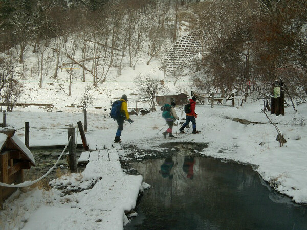 | 【プロローグ】 今年も昨年と同様にスノーシューハイクを担当することになった。昨年の奥鬼怒温泉郷は魅力的なエリアで、秘湯の趣があったが、残念ながらスノーシューハイクには適さなくて、アイゼン歩行が中心だった。よって今年はスノーシューハイク主体を考えてこの地を選んだ。 |