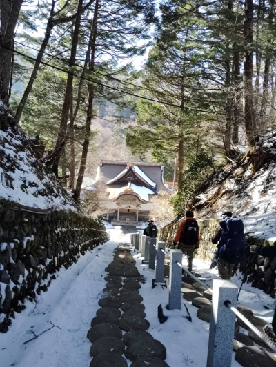 タクシーで下部温泉駅まで運んでもらった。敬慎院への参拝と参道巡りは静かな白銀の世界が広がり、厳かな雰囲気と雪山気分が味わえた楽しい二日間だった。 |